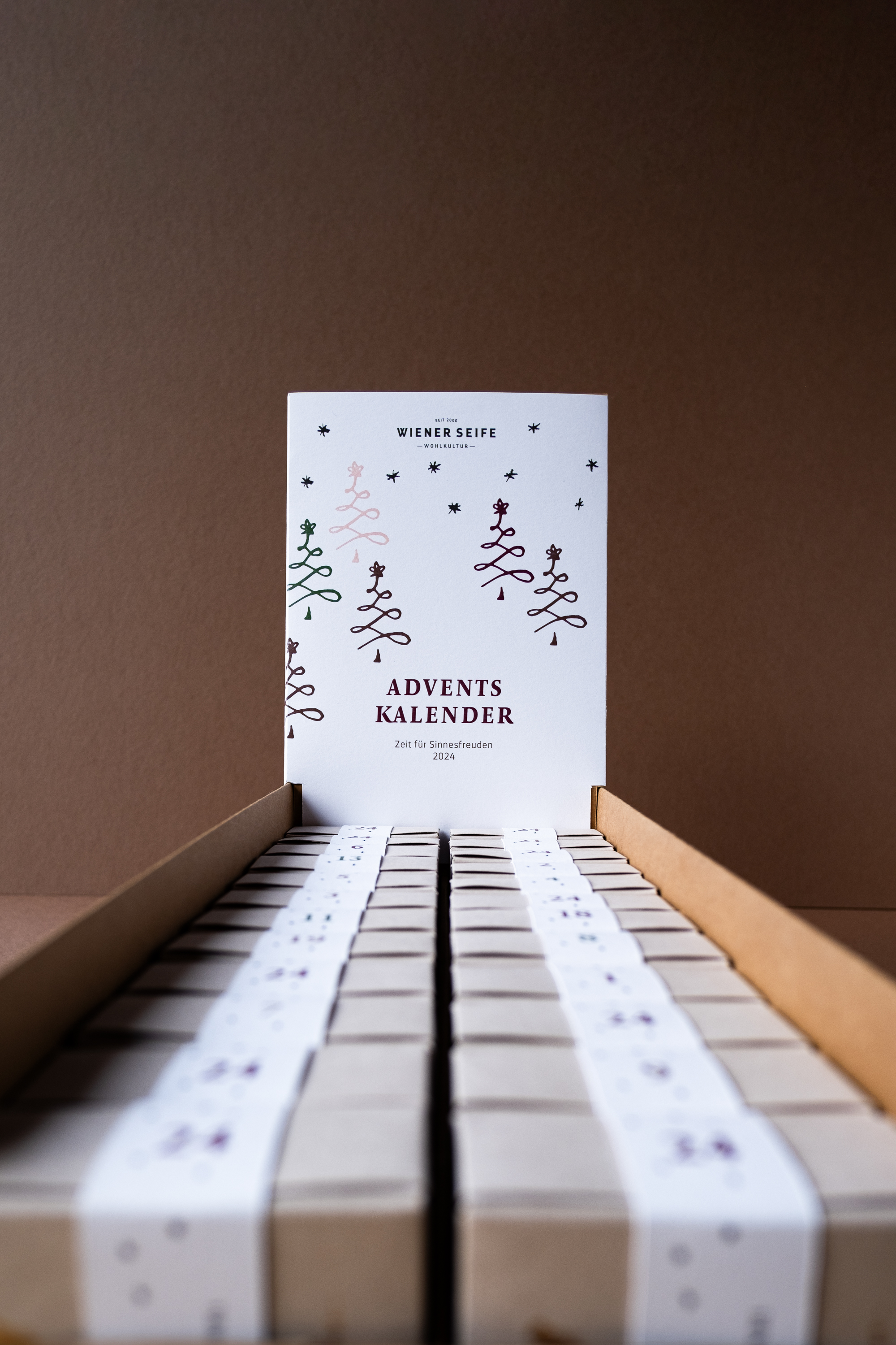 Jetzt vormerken - lassen Sie sich verzaubern von unserem exklusiven WIENER SEIFE Adventskalender, der auch 2025 wieder in kleiner limitierter Stückzahl erhältlich sein wird. Freuen Sie sich auf ein Fest der Sinne mit 24 handwerklich hergestellten Traditionsprodukten. Tauchen Sie ein in eine genussvolle Adventszeit und lassen Sie sich jeden Tag mit einer neuen, liebevoll ausgewählten Überraschung verwöhnen - vielen duftenden Seifenstücken, Accessoires, Gewürzen und süssen Köstlichkeiten zum Geniessen.