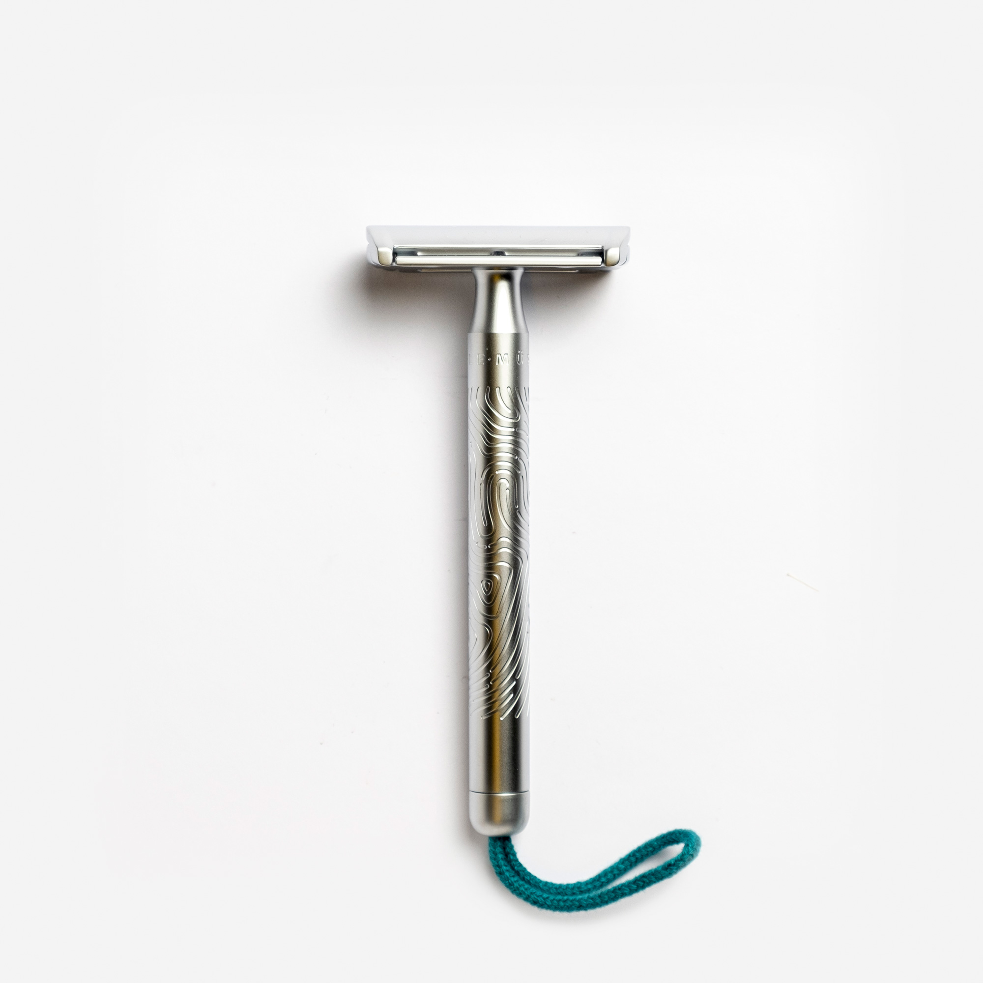 Das Griffende ist mit einer Kordel aus reiner Baumwolle versehen – erhältlich in den Farben Türkis, Blau, Koralle und Stein. So lässt sich der Rasierhobel hängend und schnell einsatzbereit aufbewahren und kann zwischen den Anwendungen optimal trocknen.